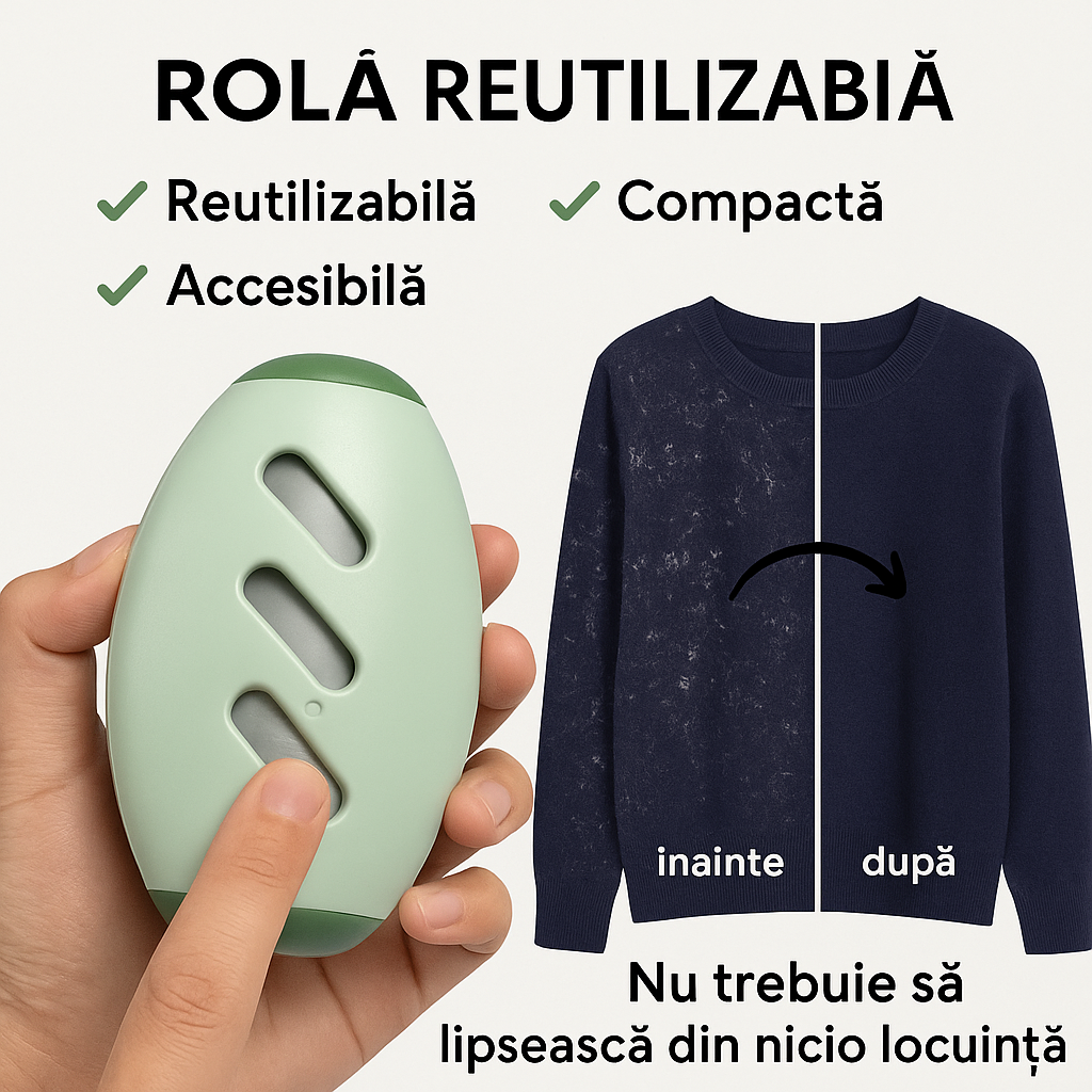 Scamele și puful dispar în câteva secunde! Această rolă reutilizabilă curăță nu doar hainele, ci și canapeaua, fotoliile sau covorul. Este simplu de folosit, eficientă și gata să îți lase totul curat și îngrijit fără efort. ✨