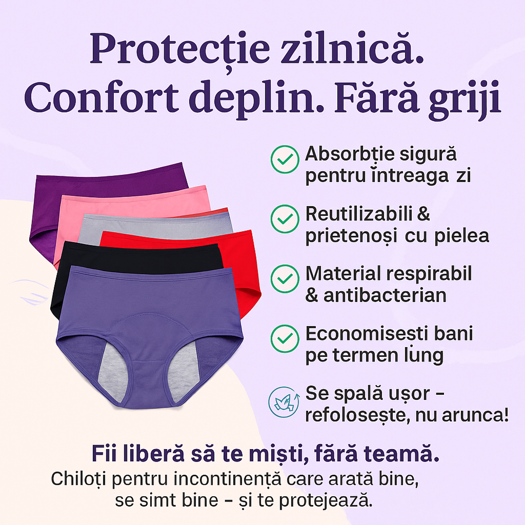 Te-ai săturat de absorbante care alunecă și creează disconfort? Această lenjerie este discretă, practică și igienică. O pui, te simți protejată și uiți că ai o problemă. Asta e diferența pe care nu vrei să o ratezi!